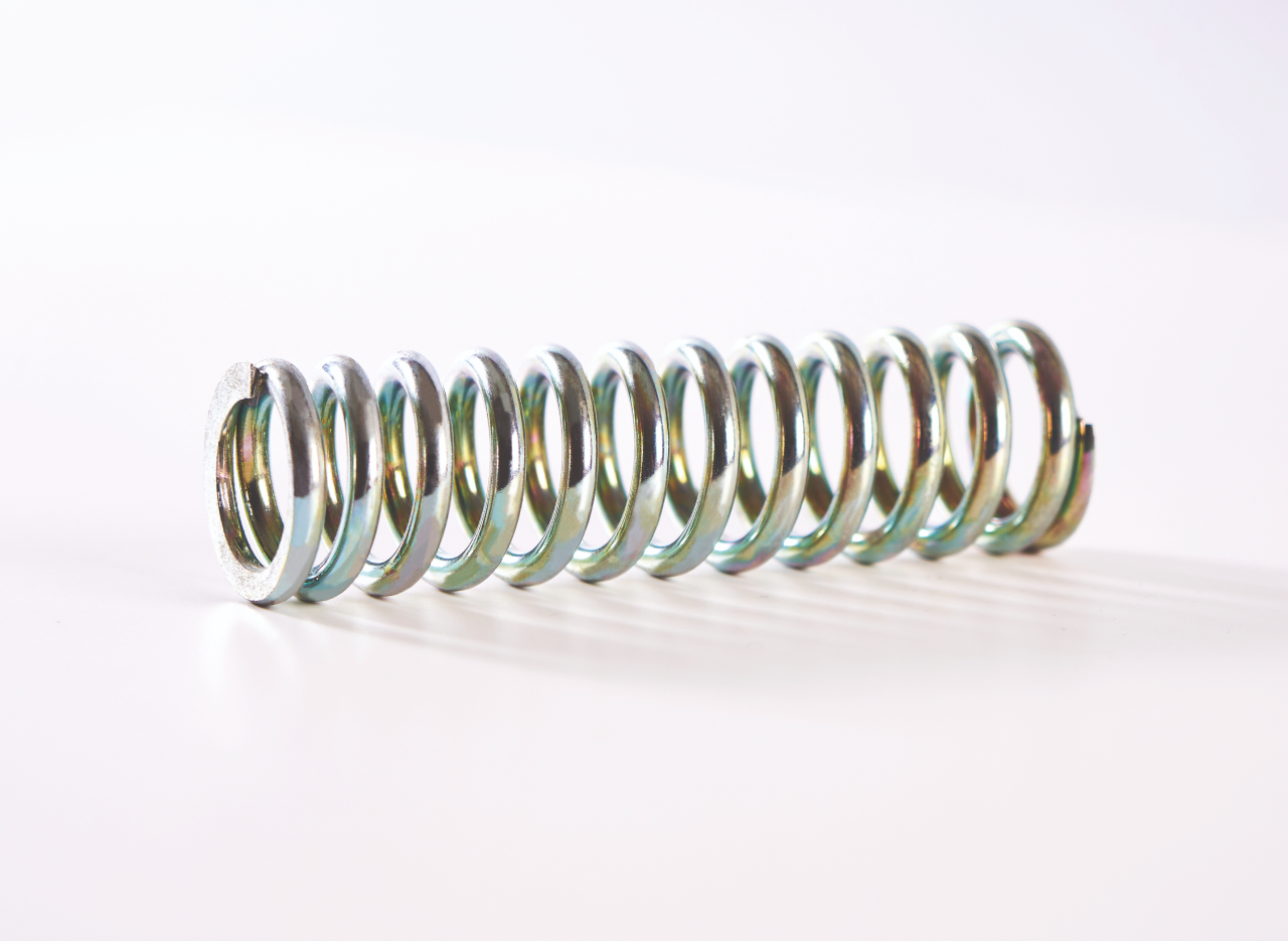 Los muelles de compresión son resortes helicoidales diseñados para oponerse a una fuerza de presión externa. Al aplicar una carga sobre ellos, el muelle se comprime, almacenando energía mecánica que libera al recuperar su longitud original cuando cesa la presión. Son el tipo de muelle más común y reconocible en la industria.