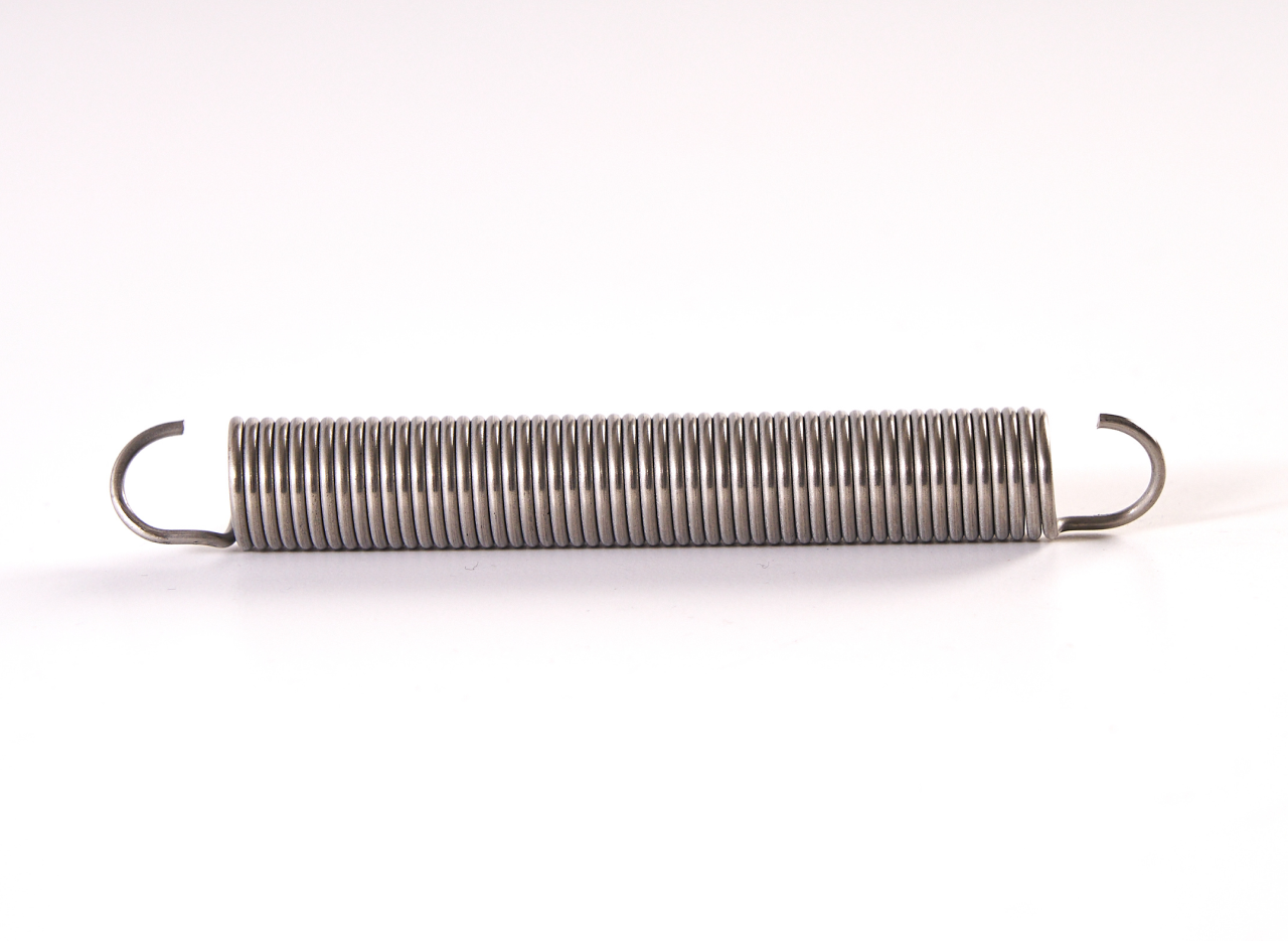Es un resorte diseñado para resistir una fuerza de estiramiento. Sus espiras suelen estar juntas en reposo y terminan en ganchos para anclarse a otros componentes.